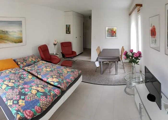 Die Ferienwohnung Leuca 11 Leukerbad liegt ungefähr 13 Gehminuten von den Gemmibahnen entfernt und bietet eine Skischule, Skiräume und einen Skiausrüstungsverleih für Skiliebhaber. Dieses 1-Zimmer-Apartment mit einer Terrasse befindet sich 250 m von der Leukerbad Therme.